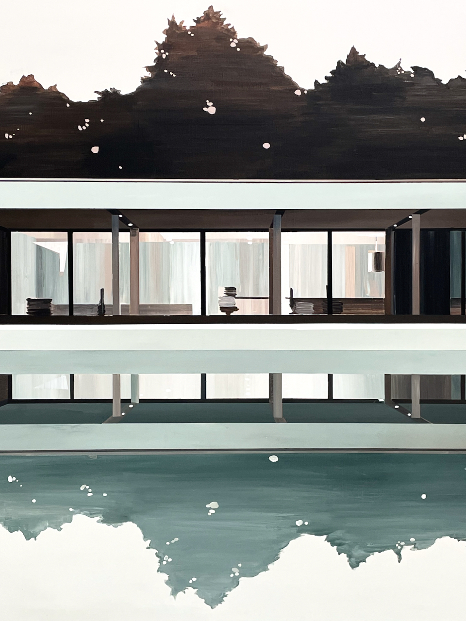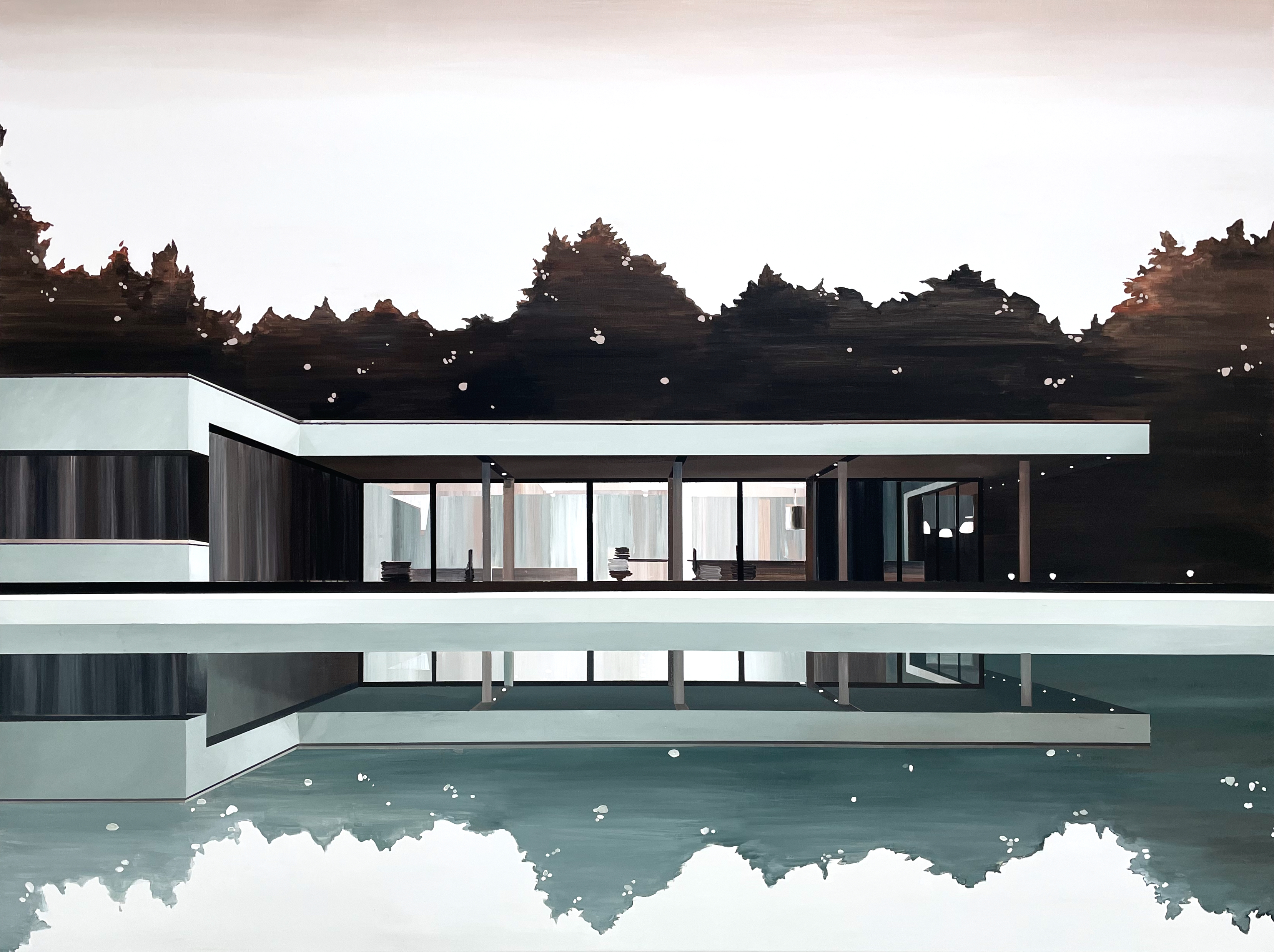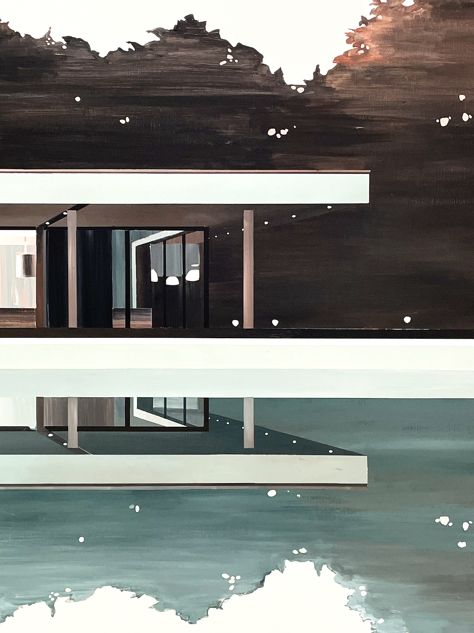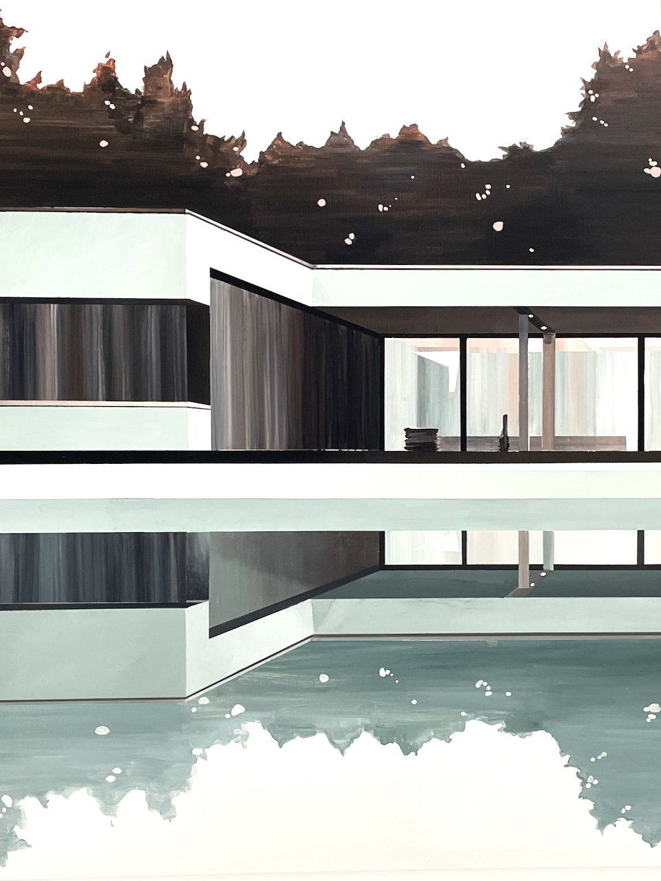 This work evokes a sense of calm and contemplation, inviting the viewer to reflect on the balance between human progress and the enduring presence of nature. In Emerald Twilight, both elements resurface together, merging into a sedative, almost otherworldly landscape that feels both intimate and expansive, grounded in reality yet imbued with the essence of a dream.