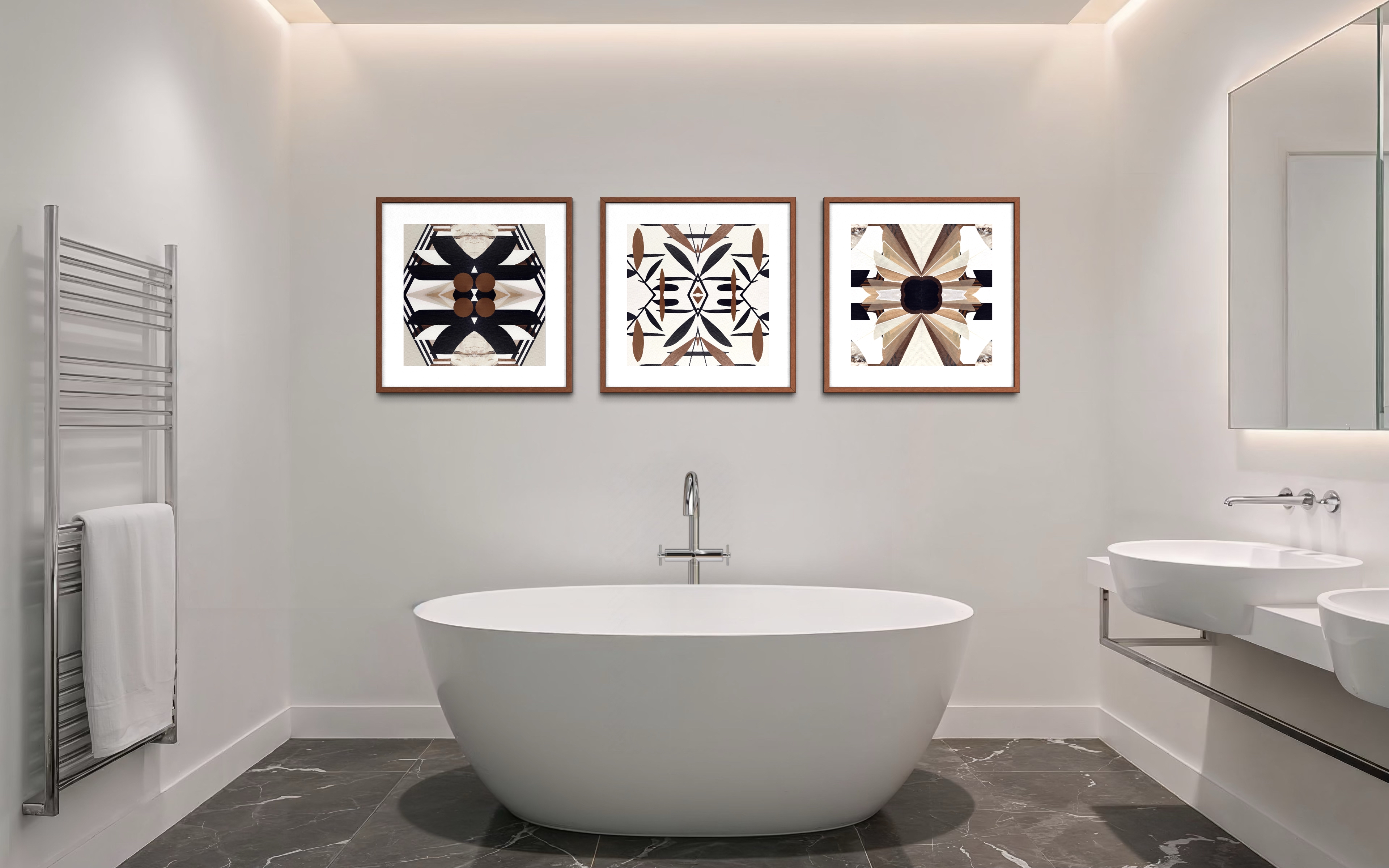 This print series reveals a totemic pattern that evokes ritual, rhythm and inner stillness. Refined abstract patterns that bring balance, depth and a sense of quiet elegance to the interior.