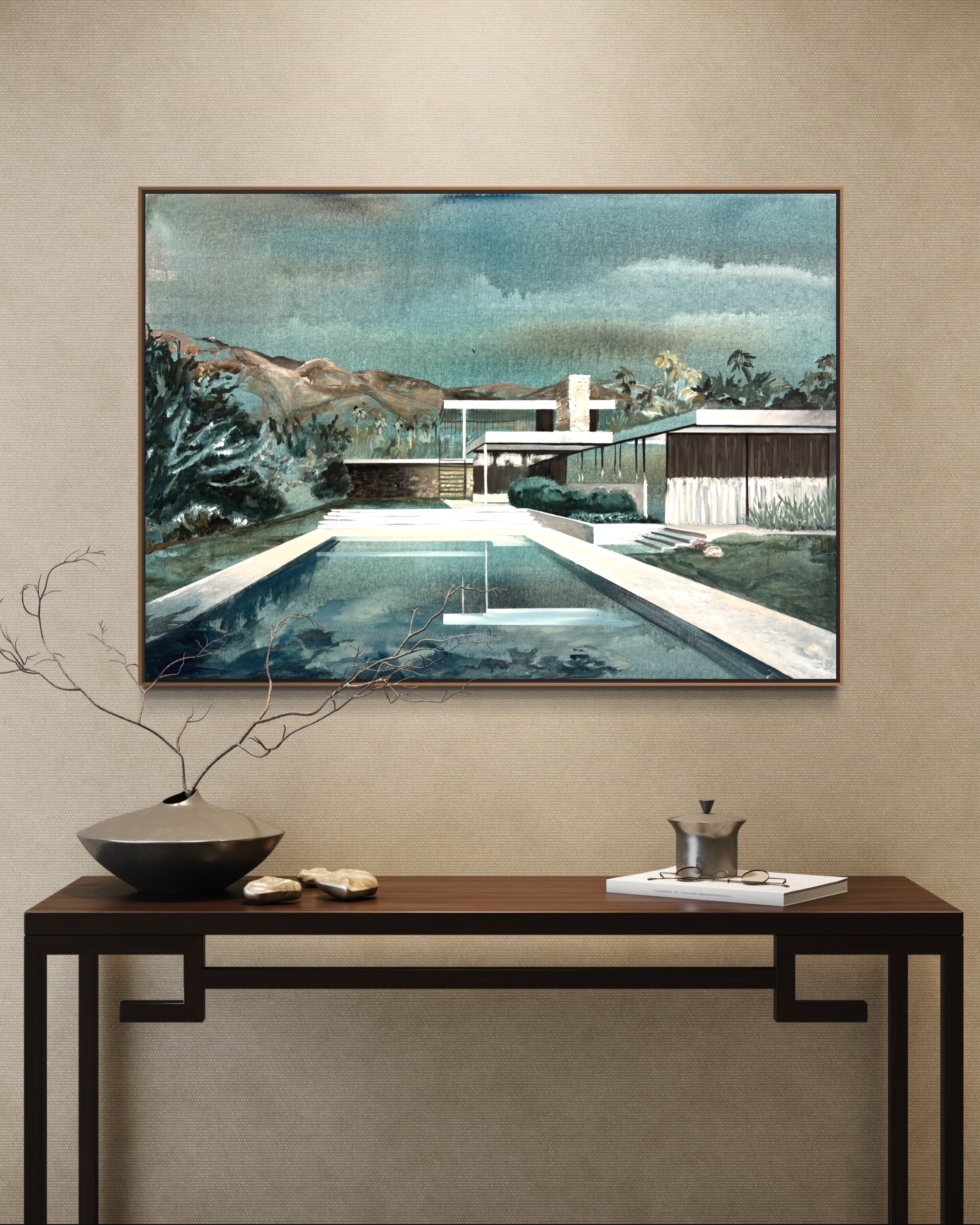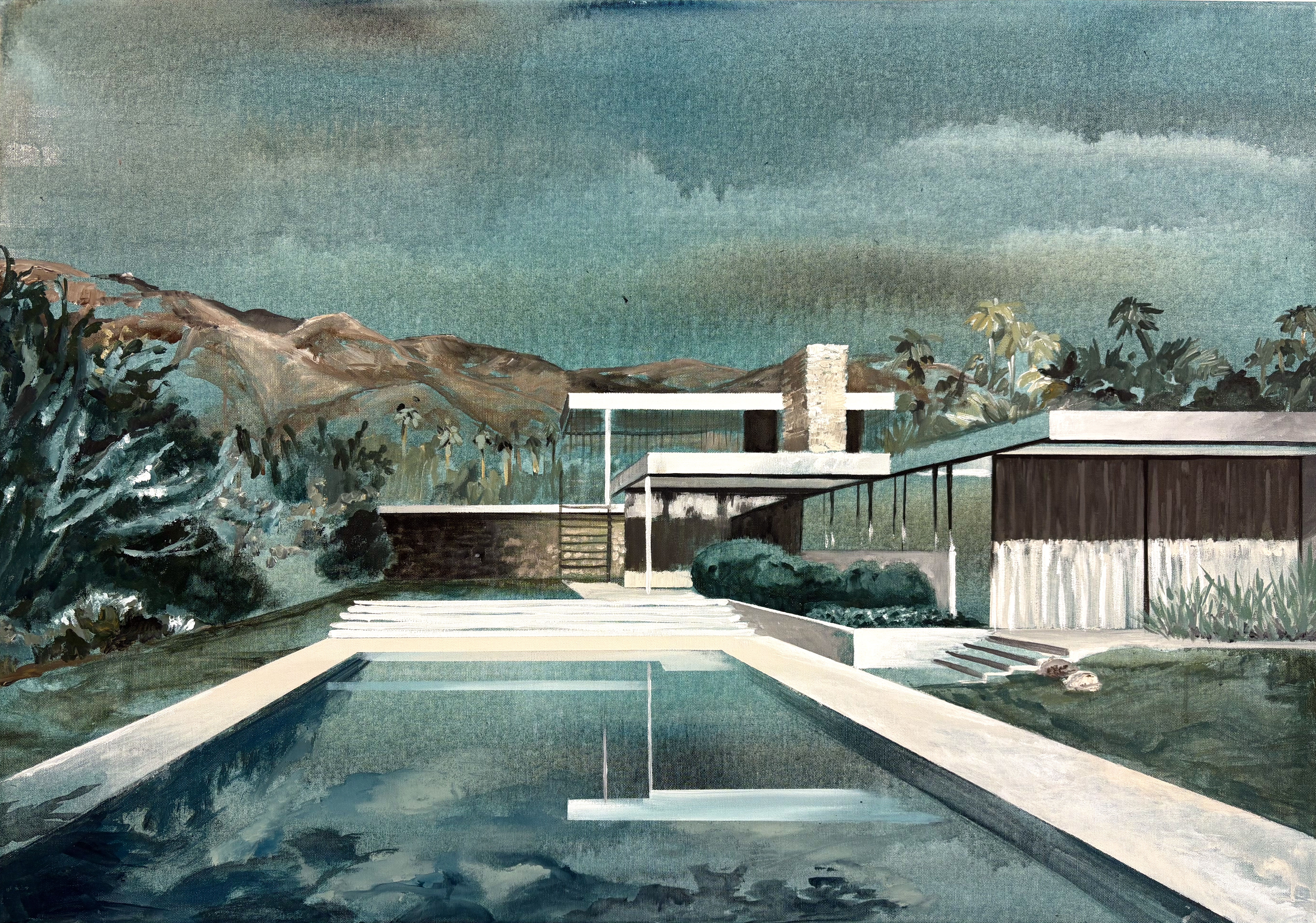 Icons of Architecture is a new series of paintings centered on the enduring classics of mid-century modernism and their intimate relationship with nature. These architectural icons are not presented as static monuments, but as living presences—structures that breathe with their surroundings and carry emotional resonance beyond their formal clarity.