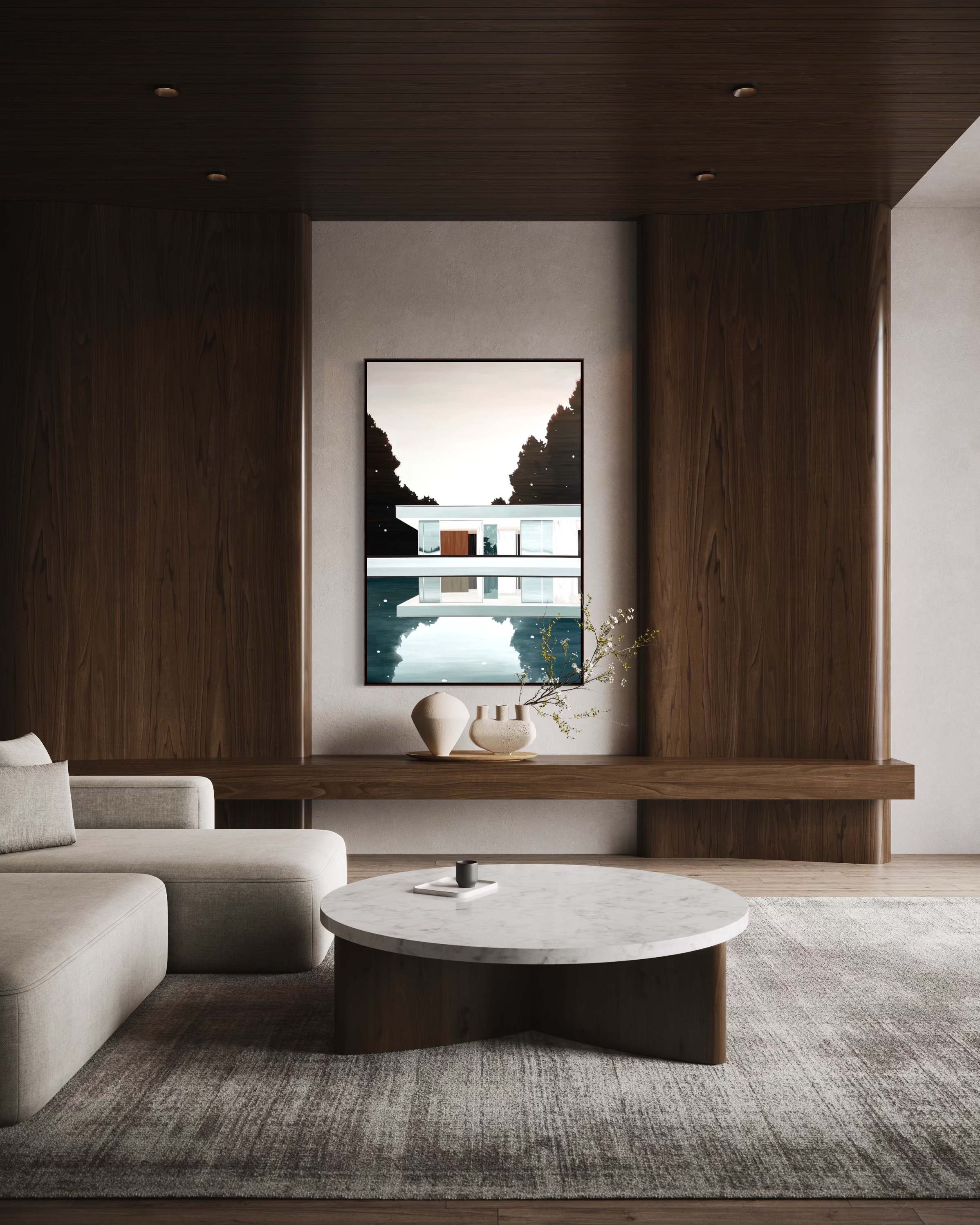 ‘I imagine a future where nature meets architecture to create new oases—expressed through art that transforms interiors into tranquil retreats. My exclusive paintings bring this vision to life as serene, original works that turn spaces into personal paradises. Whether in luxury homes, inspiring offices, or refined hospitality interiors, they invite moments of balance and calm amid the demands of everyday life.