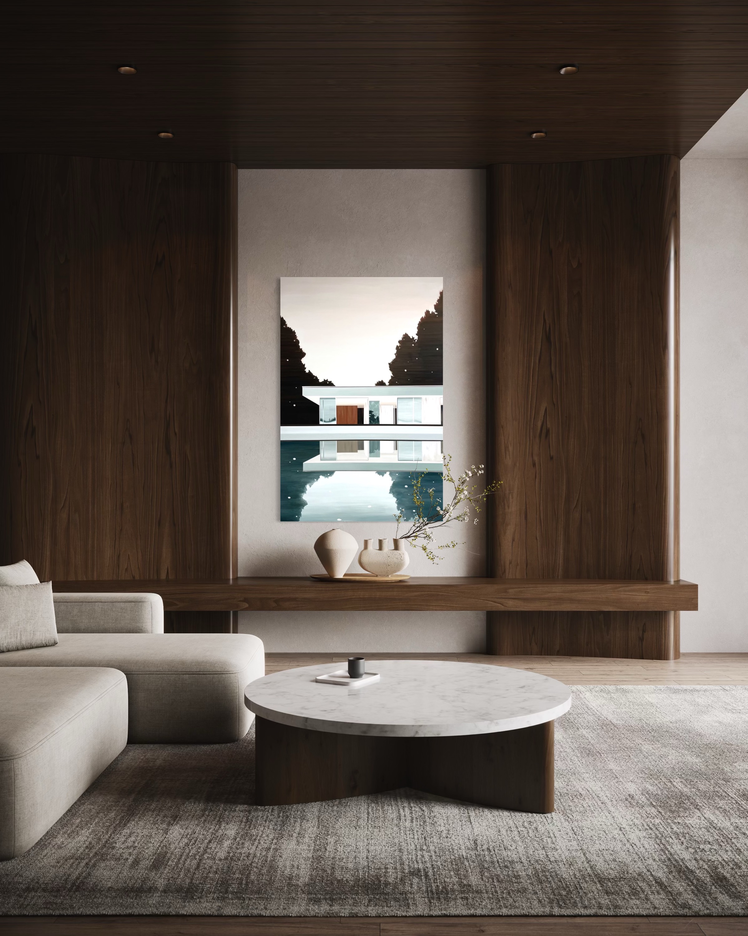 ‘I imagine a future where nature meets architecture to create new oases—expressed through art that transforms interiors into tranquil retreats. My exclusive paintings bring this vision to life as serene, original works that turn spaces into personal paradises. Whether in luxury homes, inspiring offices, or refined hospitality interiors, they invite moments of balance and calm amid the demands of everyday life.