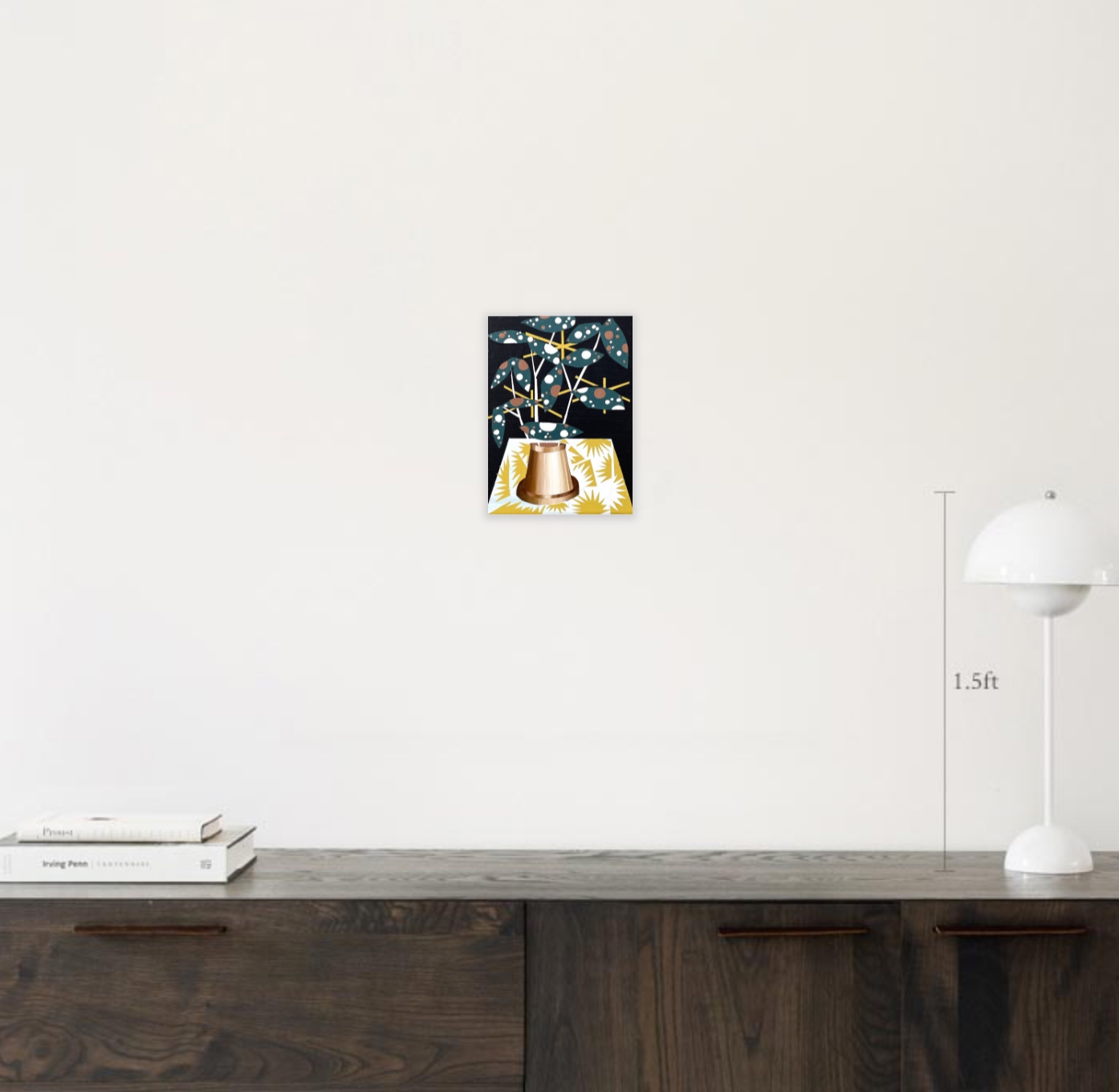 This painting is part of the Forces of Nature series, a body of work that celebrates positive human qualities. Each piece embodies a virtue or characteristic that inspires personal growth and balance. These forces of nature are portrayed through carefully composed still lifes, where plants and intricate patterns bring each theme vividly to life.