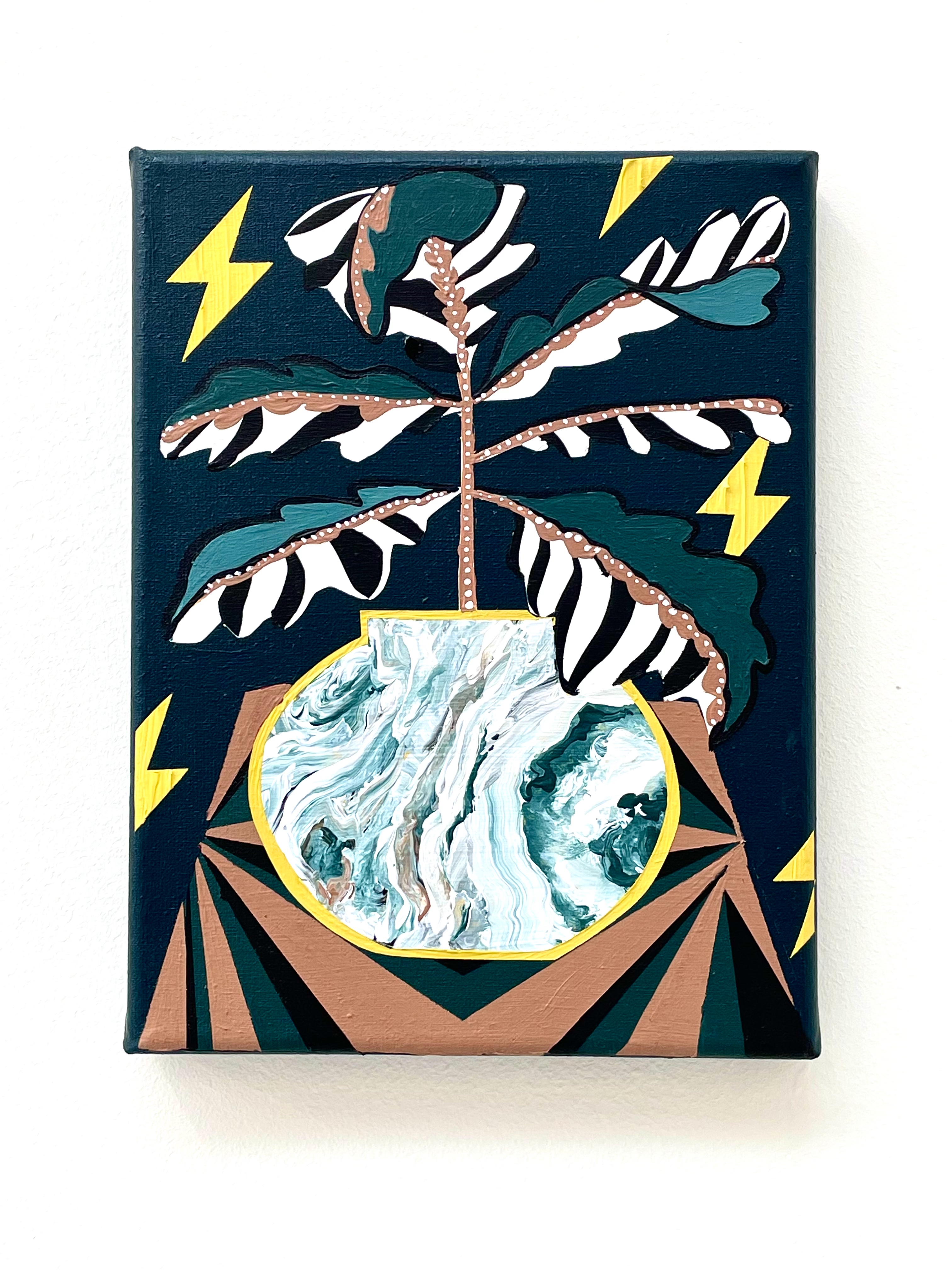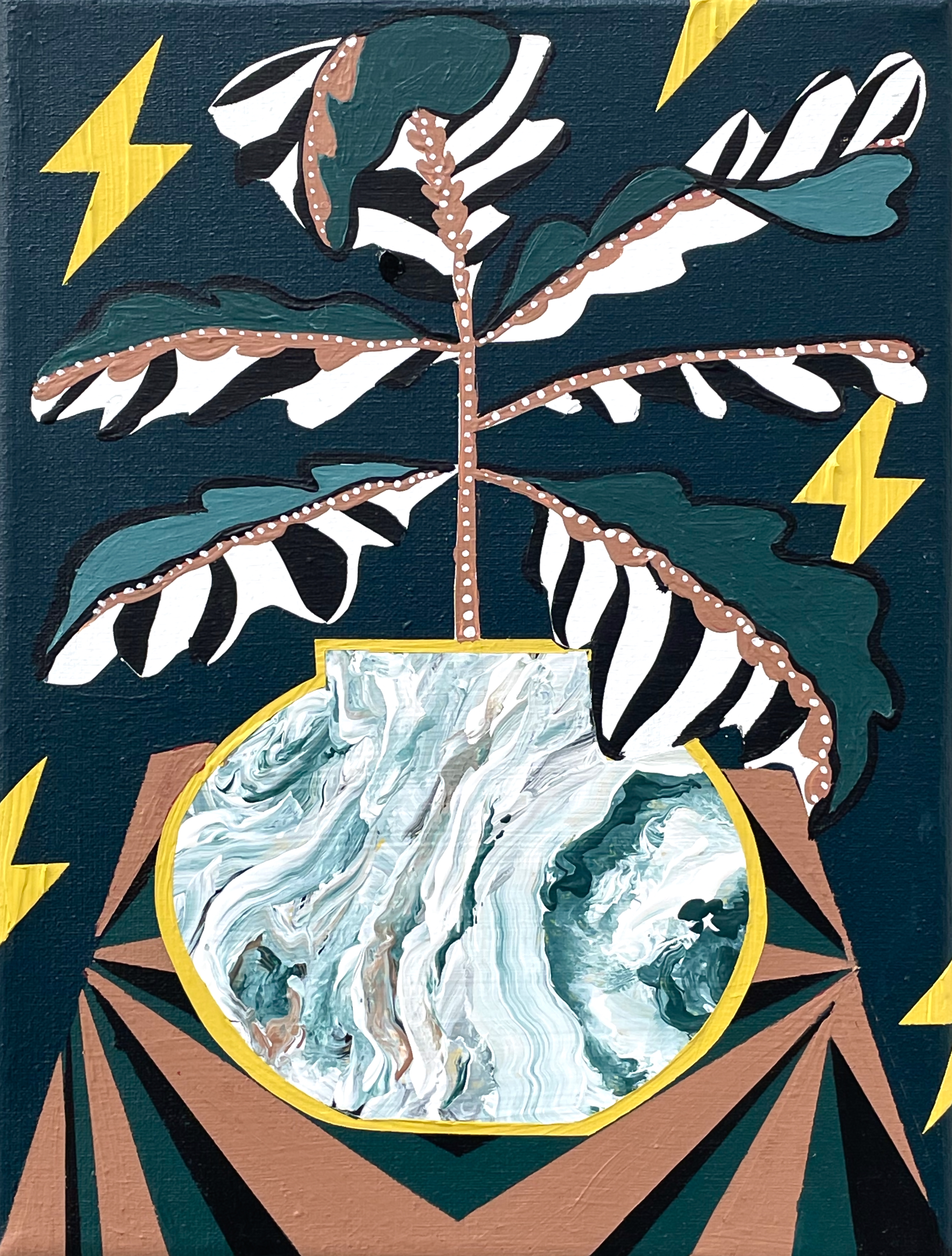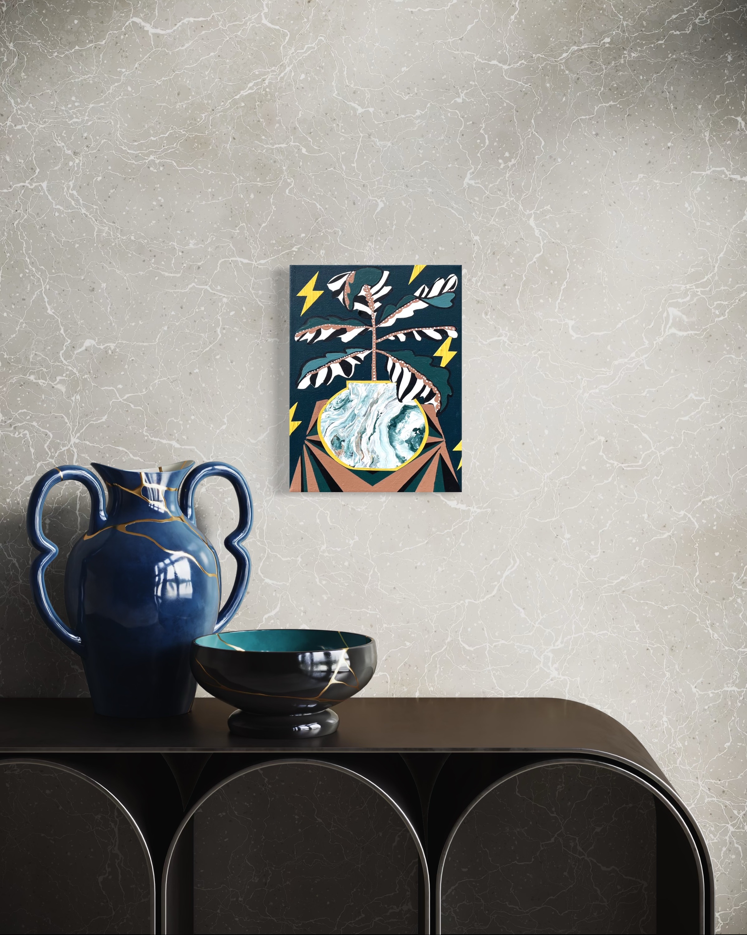 This painting is part of the Forces of Nature series, a body of work that celebrates positive human qualities. Each piece embodies a virtue or characteristic that inspires personal growth and balance. These forces of nature are portrayed through carefully composed still lifes, where plants and intricate patterns bring each theme vividly to life.