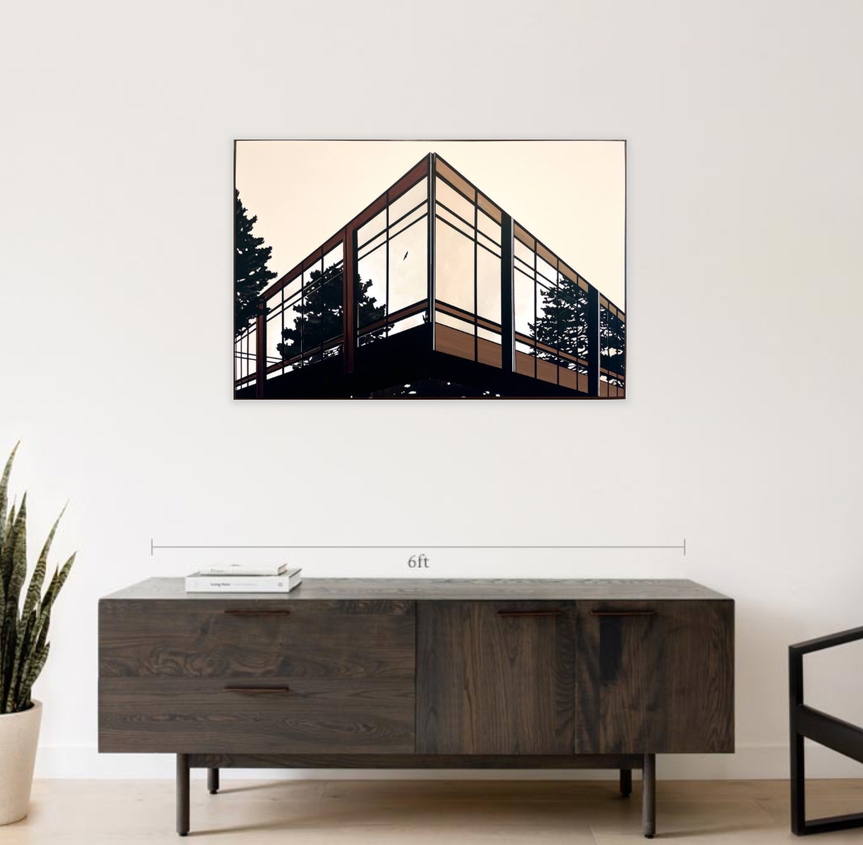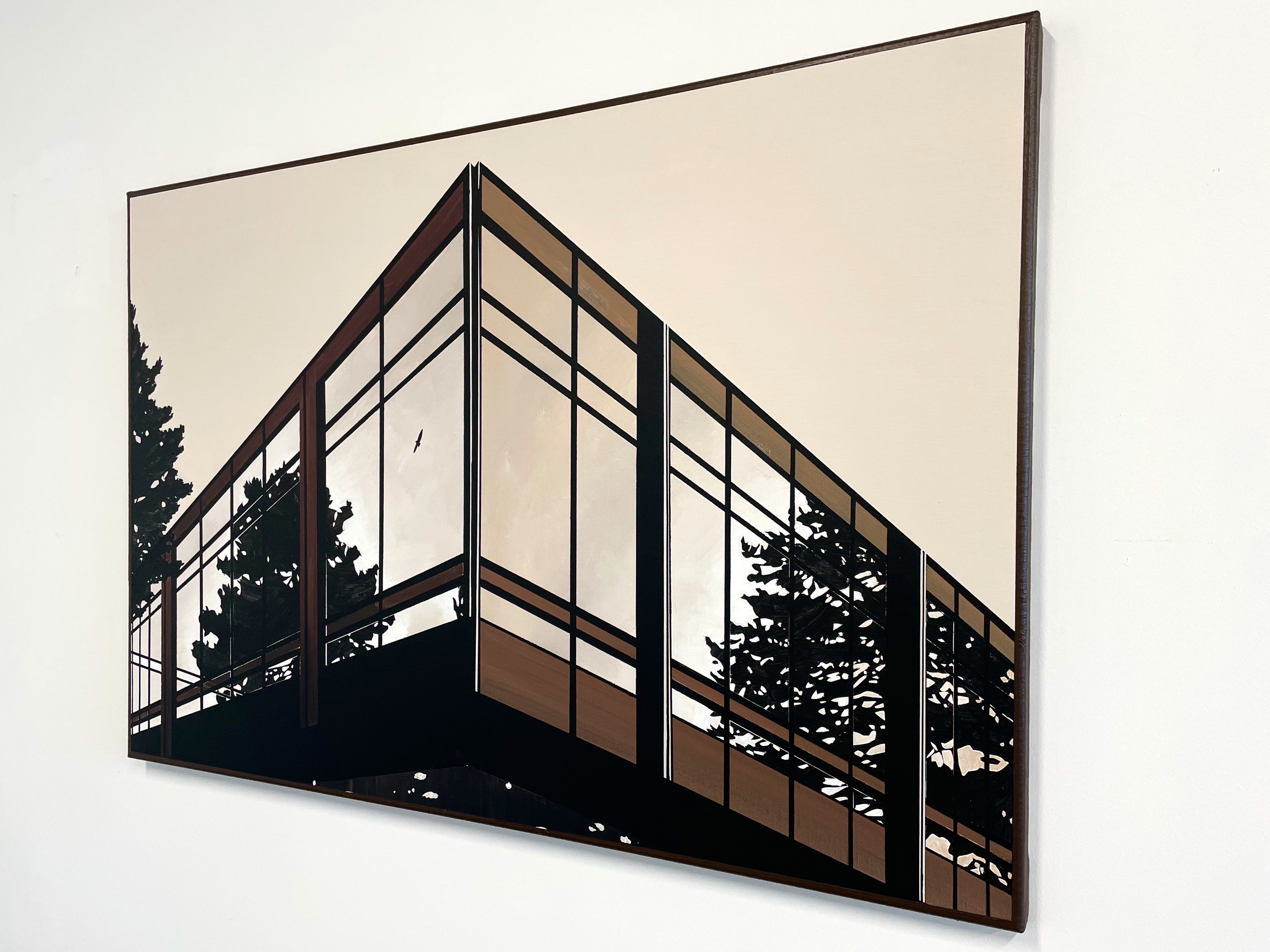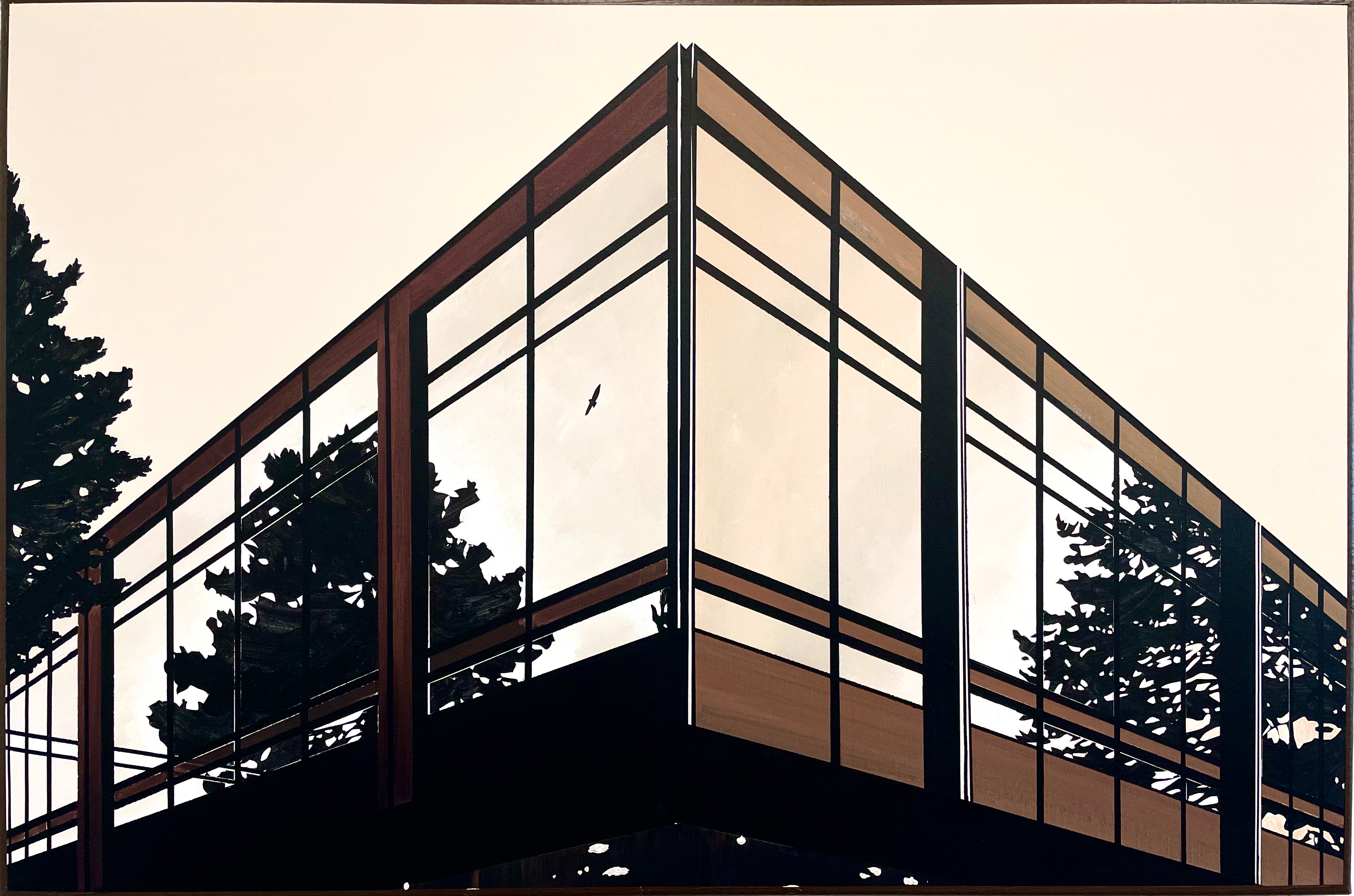 The trees, vividly reflected in the expansive windows, blur the boundaries between interior and exterior spaces. This open, thoughtful design not only provides room for nature to thrive but also invites contemplation, as plants and trees inspire and soothe the viewer, transforming the structure into a serene oasis.