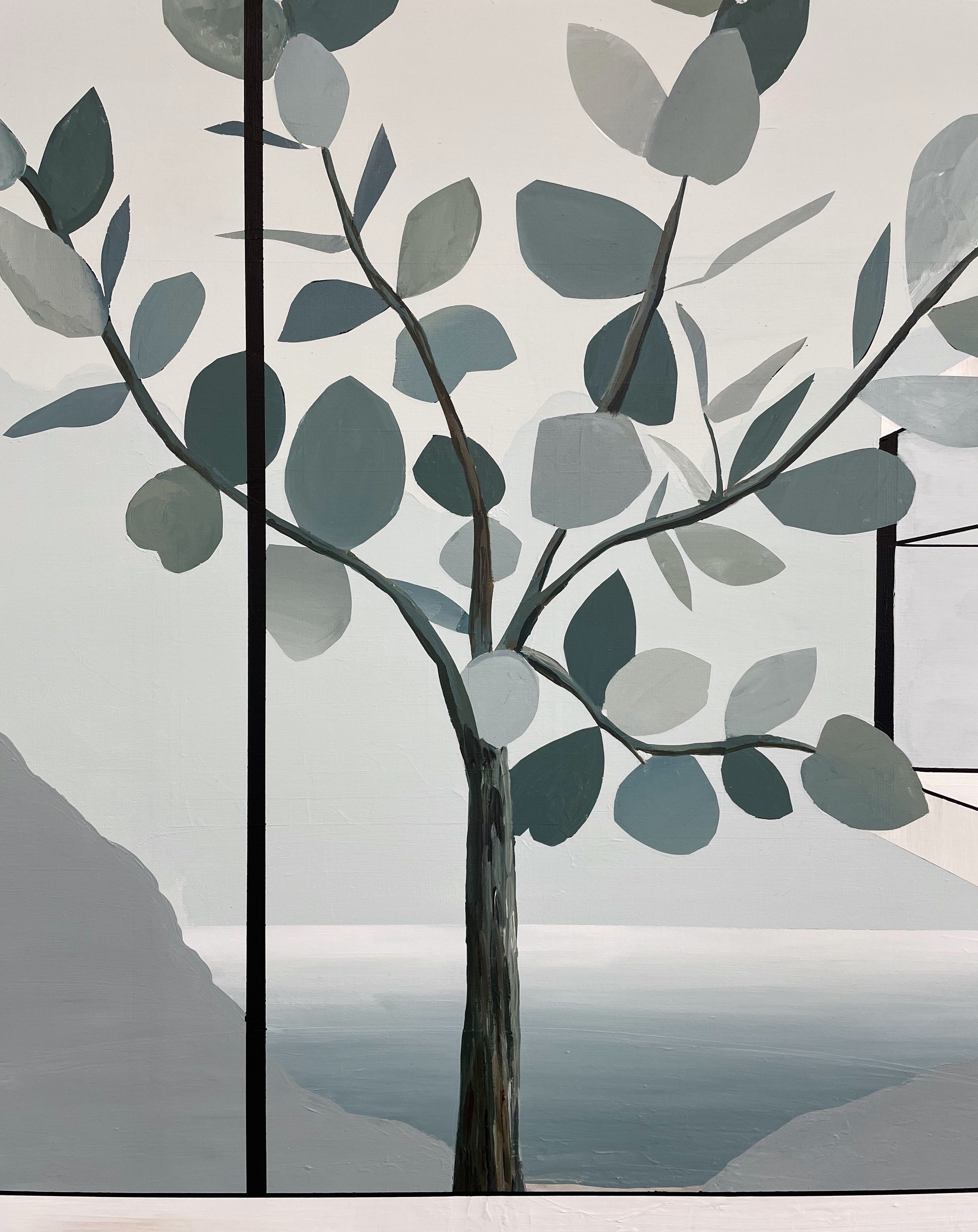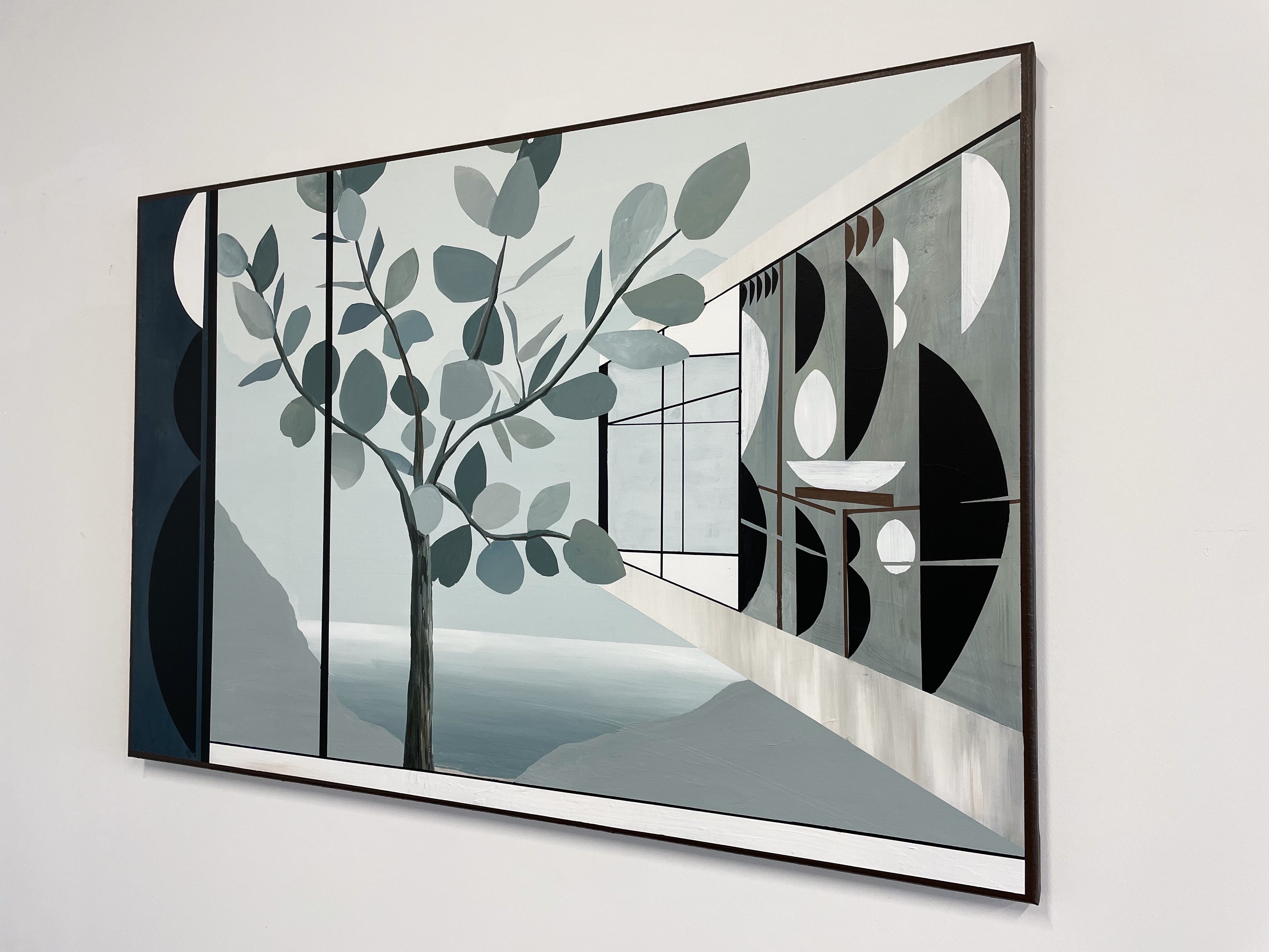 At the center of this work stands the Tree of Wisdom, symbolising intuition, balance and inner calm. On the right, a villa perched on a mountain overlooks the sea, offering ... Read more